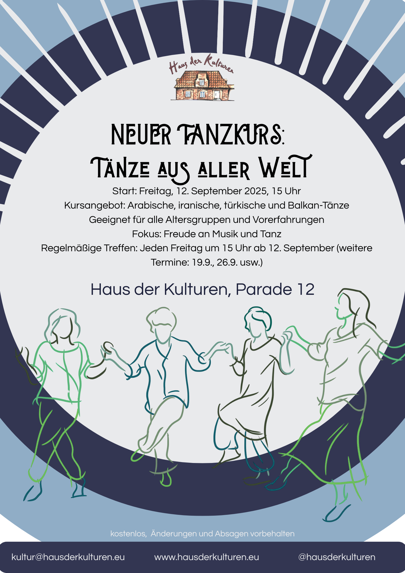 Im Rahmen der »Interkulturellen Wochen« startet im Haus der Kulturen ein neuer Kurs: Tänze aus aller Welt. Gemeinsam erlernen und tanzen wir arabische, iranische, türkische